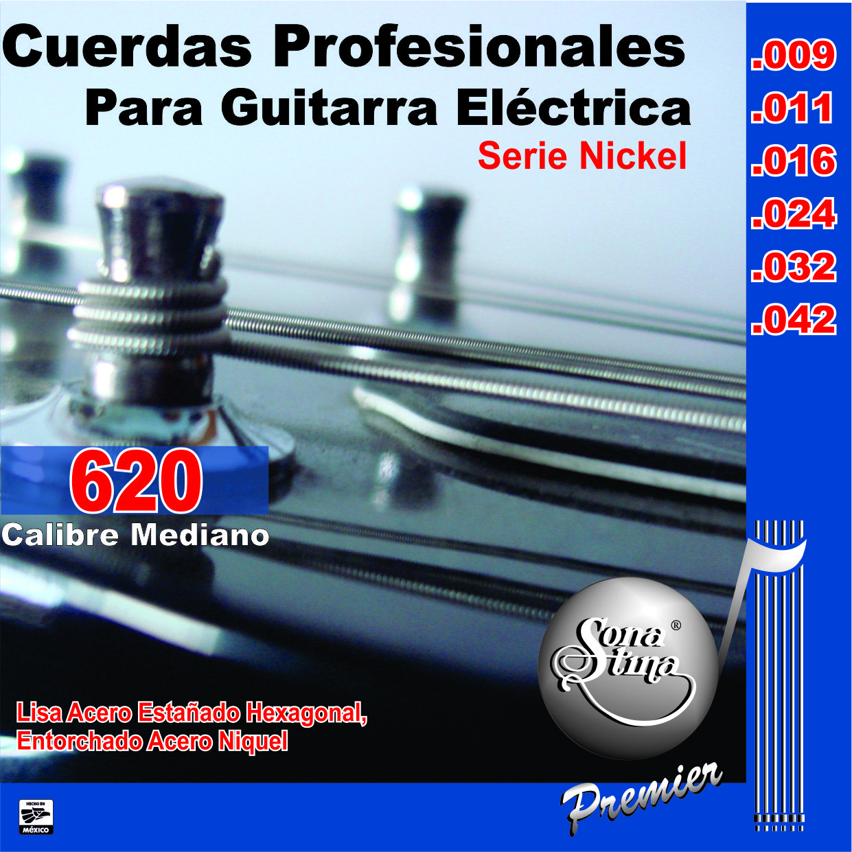 Cuerdas Profesionales para Guitarra Eléctrica, Premier, Mod.620